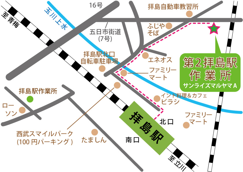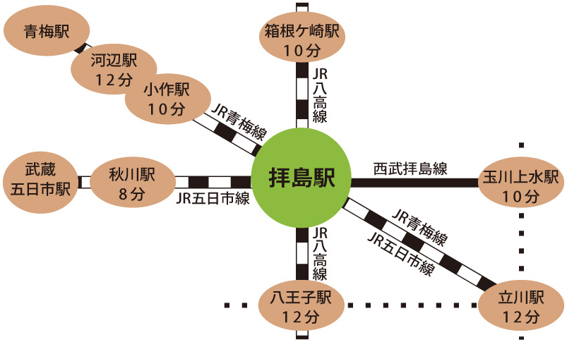 JR青梅線・五日市線・八高線・西武拝島線「拝島駅」北口より徒歩5分